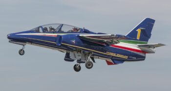 Quand le 29 décembre 2016 le prototype du M-345 réalisa son premier vol Finmeccanica avait changé de raison sociale et était devenue Leonardo. Quelques mois plus tard l’Aeronautica Militare passa une commande officielle pour cinq avions destinés au remplacement des Aermacchi MB-339PAN, les montures des Frecce Tricolori. L’idée était que ce petit jet d’entraînement devienne la monture officielle de présentation italienne. C’est d’ailleurs sous cette livrée que le premier exemplaire se produisit aux quatre coins du globe. Malheureusement pour lui le Leonardo M-345 était appelé à ne jamais volé ainsi. En effet les essais en vol démontrèrent qu’il était inapte aux vols en formation serrée sous facteurs de charges élevées. L’Aeronautica Militare dut changer son fusil d’épaule. Plutôt que d’annuler la commande de cinq avions elle l’enrichit d’une seconde en juin 2019 pour treize exemplaires supplémentaires. Désormais la commande italienne s’élevait à dix-huit M-345.