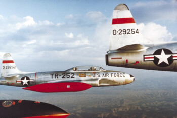 Avec 5691 exemplaires construits par Lockheed entre 1949 et 1959, le Lockheed T-33 est de loin l’appareil d’entraînement qui fut le plus utilisés dans le monde entier. L’essentiel des commandes alla équiper l’USAF, dont le besoin d’un appareil d’entraînement à réaction était primordial. Du coup 5594 exemplaires dotés d’un réacteur Allison 133-A-35 de 2 450 kgp furent fournis à l’Air Force, tandis que 699 d’entre eux ayant été reversés à l’US Navy sous le type TO-1, devenu T-33B en septembre 1962.