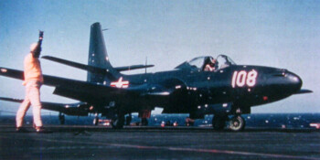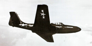 La plus grande révolution aéronautique que connu la Seconde Guerre mondiale est certainement sans conteste l’apparition de la propulsion à réaction. La Luftwaffe, la Royal Air Force, et dans une moindre mesure l’US Army Air Force eurent recours sur les deux dernières années du conflit à des avions à réactions aussi bien pour des missions de chasse, que de bombardement ou de reconnaissance. Devant l’engouement suscité par ces appareils, l’US Navy chercha rapidement à disposer elle aussi d’avions de ce type. Ceux-ci étaient censés lui donner une supériorité écrasante sur les chasseurs nippons dans le Pacifique. C’est ainsi que l’aéronavale américaine acquis à la toute fin de la guerre un avion qui, s’il ne fut pas franchement une réussite, demeure son premier avion de combat à réaction à avoir effectué un appontage sur un porte-avions : le Mc Donnell FH Phantom.