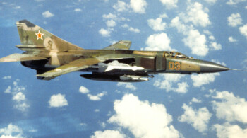 La version d’exportation « Flogger E » avait une éléctronique moins sophistiqué et le MiG-23BN « Flogger F » disposait du nez du chasseur MiG-27.