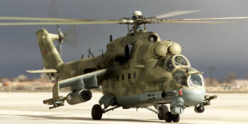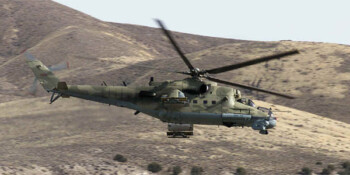La première grande campagne opérationnelle du Mil Mi-24 eut lieu en Afghanistan, à partir de l’invasion soviétique de décembre 1979. Sur ce théâtre, l’hélicoptère joua un rôle décisif dans les missions d’escorte, de frappe en profondeur et de soutien au sol. Redouté par les combattants moudjahidines, il était surnommé « le char du ciel« . Toutefois, la prolifération des missiles portables Stinger, livrés à partir de 1986 par les États-Unis, infligea de lourdes pertes aux unités d’hélicoptères. En réponse, les Soviétiques renforcèrent les contre-mesures et adaptèrent leur tactique : vols en rase-mottes, attaques rapides en plongée, emploi en tandem avec des appareils de reconnaissance ou de détection. Malgré ces pertes, le Mi-24 démontra sa résilience et sa capacité à opérer dans des conditions extrêmes, y compris en haute montagne et à température élevée.