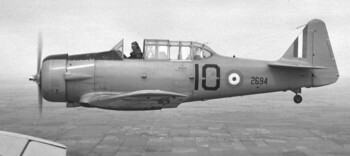 Il faut savoir qu’en 1942 la Royal Air Force livra environ 150 Harvard Mk-II à la Royal Canadian Air Force qui leur octroya la désignation de Harvard Mk-IIA et les utilisa pour la formation au tir avec lance-bombes sous les ailes.