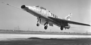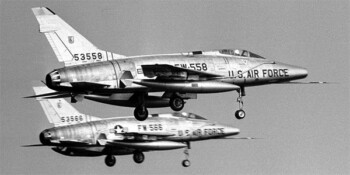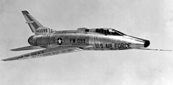 Le F-100 Super Sabre fut de ces avions qui marquèrent leur époque, ayant été le premier avion d’armes occidental vraiment supersonique. Il fut aussi remarquable par la rapidité de sa mise au point. Le prototype YF-100A vola pour la première fois le 25 mai 1953 et le F-100A entra en production à peine 5 mois plus tard, le 29 octobre.