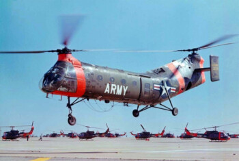 Plus de 700 H-21 Shawnee furent construits jusqu’en 1958. Le Workhorse a la distinction d’être l’hélicoptère qui a révolutionné la mobilité aérienne des armées de terre. Grâce à ses missions d’évacuation sanitaire et de sauvetage, plusieurs doivent également la vie à la «Banane volante» qui a su acquérir ses lettres de noblesse.