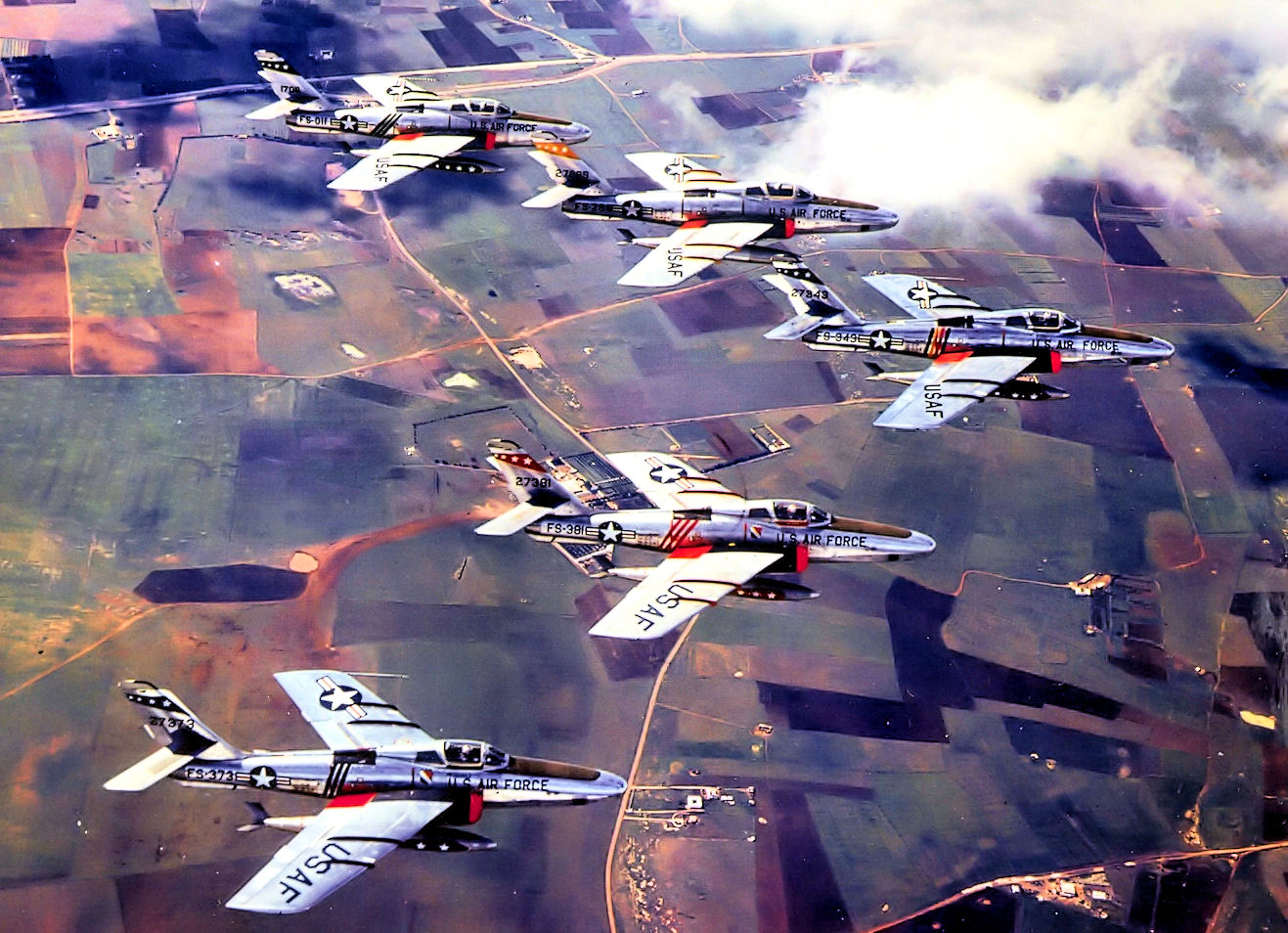 Assez logiquement l’US Air Force fut la première à voir arriver dans ses rangs les Republic RF-84F Thunderflash à la fin de l’année 1954. Pour autant l’avion ne suscita pas un réel engouement de la part des pilotes américains. Ils y remplacèrent les quelques North American RF-86F Sabre construits à la va-vite durant la guerre de Corée et surtout les Lockheed RF-80 Shooting Stars. Un général américain eut une déclaration lapidaire à propos des nouveaux RF-84F Thunderflash : «toujours plus rapides mais incapables de voler aussi loin que nos vieux F-15». L’officier de l’US Air Force faisait un lien avec le Northrop RF-61 Reporter, retiré du service cinq ans plus tôt et qui disposait d’un extraordinaire rayon d’action pour un avion tactique.
