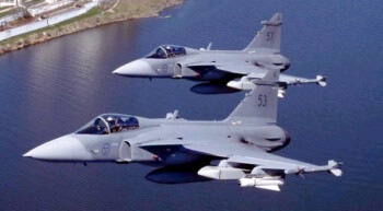 Le chasseur polyvalent monoplace Gripen (griffon) fut conçu pour remplacer le Viggen dans ses versions de chasse et de reconnaissance, ainsi que tous les Draken encore à l’inventaire des unités de la Flygvapnet. Le Gripen avait une aile delta tronquée et des plans canard mobiles; il était désigné du nom de JAS 39, ses initiales soulignant ses trois rôles : Jakt Attack Spaning, c’est-à-dire Chasse/Attaque/Reconnaissance.