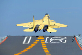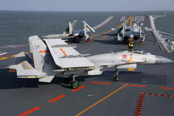 Pour beaucoup de nations au monde la capacité d’armer un porte-avions est un symbole fort de puissance. La Chine communiste ne fait pas exception, et son navire baptisé Liaoning en est la preuve. Ancien bâtiment soviétique, passé par la marine ukrainienne, il n’a rejoint l’Asie qu’en 1998 pour être adapté aux besoins chinois. Désormais opérationnel celui-ci embarque une vingtaine d’aéronefs pour des missions qui généralement ne dépassent pas les frontières du Pacifique et de l’océan indien. A son bord l’avion de combat le plus moderne est un dérivé du Sukhoi Su-33 russe désigné Shenyang J-15.