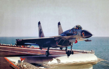 À la fin des années 1990 Pékin tenta de négocier l’acquisition de deux à trois Su-33 auprès de Moscou. Cependant ce marché ne semblait pas convenir aux autorités russes qui refusèrent la transaction. Alors les Chinois se mirent en quête de trouver un autre avion apte à pouvoir embarquer à bord de leur tout nouveau porte-avions. Pour des raisons diplomatiques autant que politiques il leur était impossible de demander l’aide des Américains et des Français, ayant coupé toute aide militaire au pays depuis le massacre des étudiants chinois sur la place Tian’anmen à Pékin au printemps 1989.