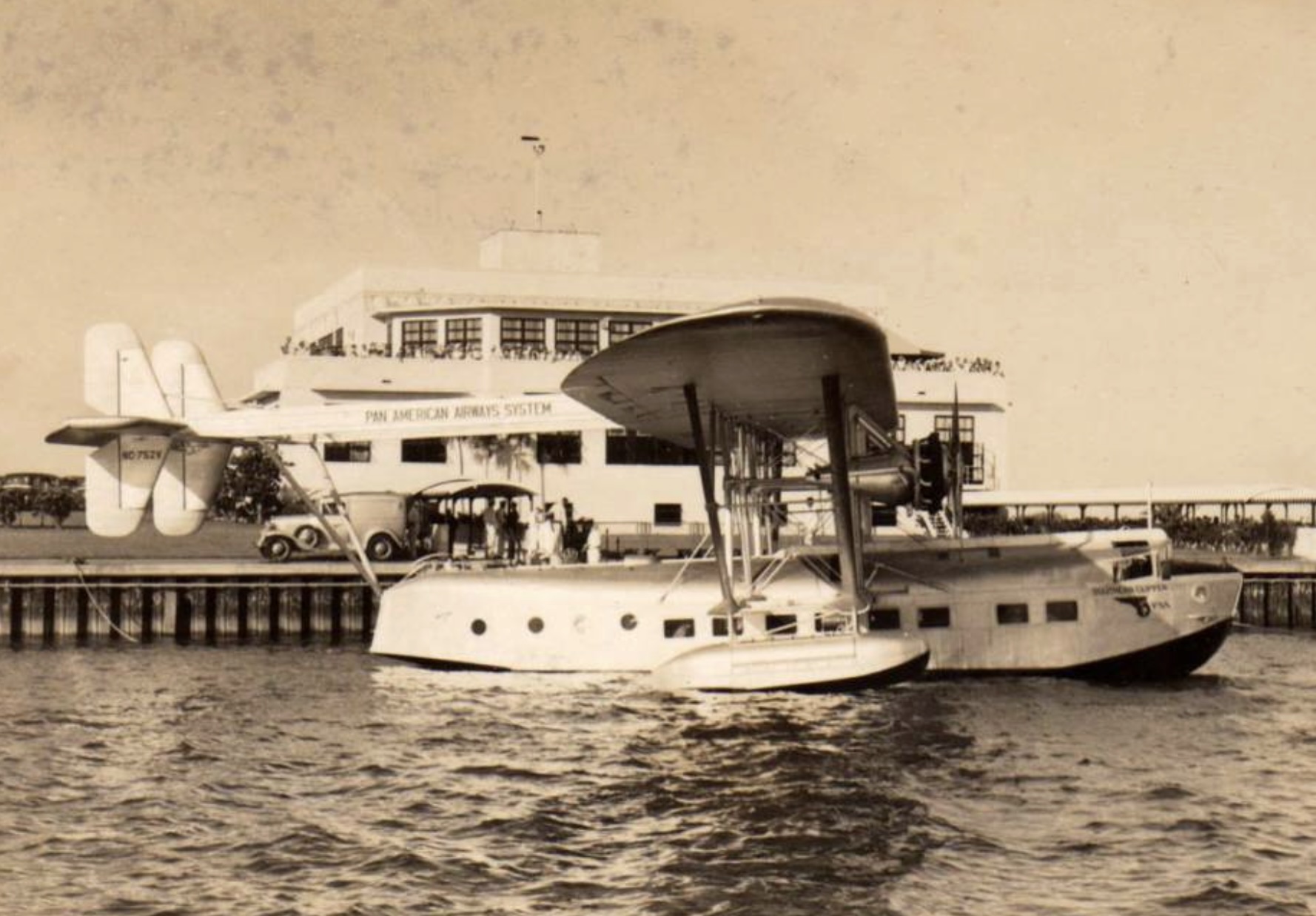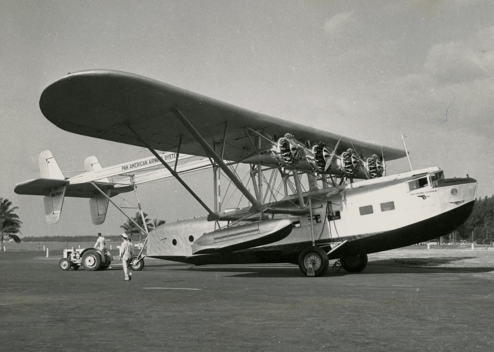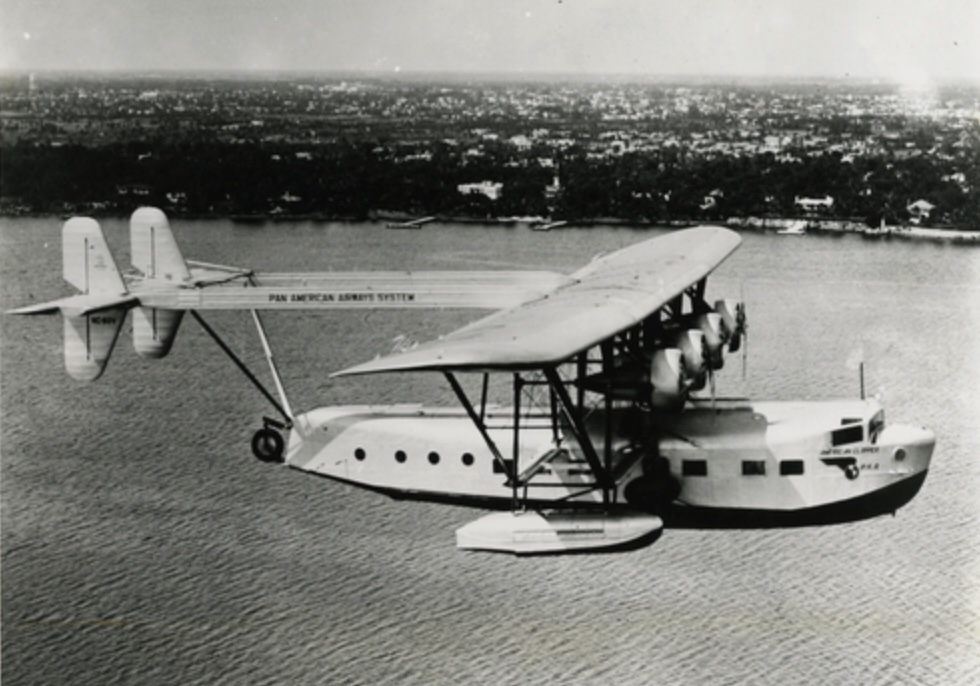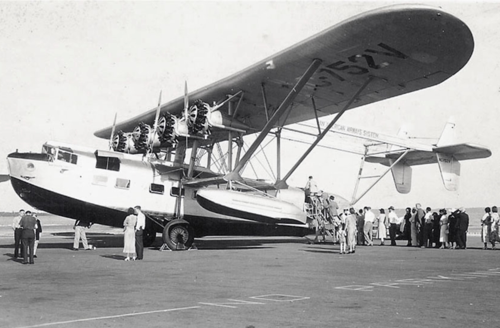 Avec ses 38 places et son équipage de six personnes, le Sikorsky S-40 était le plus grand avion de ligne américain de son époque. Seuls trois exemplaires furent fabriqués, mais ils marquèrent durablement les esprits en tant que les premiers Clippers, un nom donné à tous les hydravions ultérieurs de la Pan Am. Première à utiliser le thème maritime Clipper, Pan Am va également innover en habillant ses équipages d’uniformes de style naval pour donner aux passagers un sentiment de professionnalisme, et ainsi encourager les gens à considérer les avions de ligne comme une alternative sécuritaire aux paquebots transatlantiques. Car c’était bien le rêve ultime de Juan Trippe: des vols commerciaux transatlantiques.