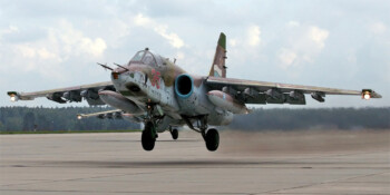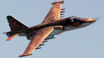 Le Su-25 « Frogfoot » est un appareil d’attaque et d’appui d’aspect rustique, il est un redoutable appareil monoplace d’appui rapproché, adapté aux pistes très sommaire. Lourdement armé de canons et d’engins air-sol, cet avion a été spécialement conçu pour le soutien des troupes au sol. Le Su-25 fit son premier vol en 1976 et entra en service 4 ans plus tard, après une longue période de mise au point.