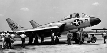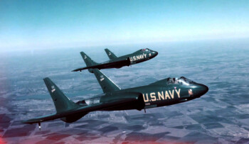 La conception Chance Vought F7U Cutlass a été commencée en juin 1945. C’était le premier avion sans empennage produit aux Etats-Unis, le premier avion à réaction à aile en flèche de la marine, et le premier appareil à réaction opérationnel conçu avec des dispositifs de post-combustion. C’était également le premier avion de Vought avec un habitacle pressurisé. Trois XF7U-1s ont été construits au début du progamme, dont le premier vol en 1948, et tous trois subirent un crash. La production de 14 F7U-1 fut commandée, mais deux d’entre eux furent détruits en sortant de l’usine. Les essais en vol en 1950 et 1951 échouairent pour un certain nombre de raisons, et les Cutlass n’ont jamais été mis en service opérationnel. Cependant, deux ont été employés brièvement par les interprètations solos des « Blue Angel » en 1952.