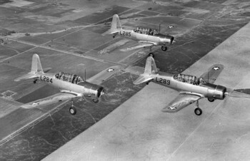Durant la Seconde Guerre mondiale, les besoins en pilotes étaient énormes au sein des forces aériennes et aéronavales américaines. Elle durent avoir recours à une vaste flotte d’avions d’entraînement pour sélectionner les candidats et les former ensuite. Le principal avion utilisé pour la formation élémentaire des aviateurs américains était un petit monomoteur construit en très grande série : le Vultee BT-13 Valiant, connu sous la désignation de SNV dans la marine américaine.