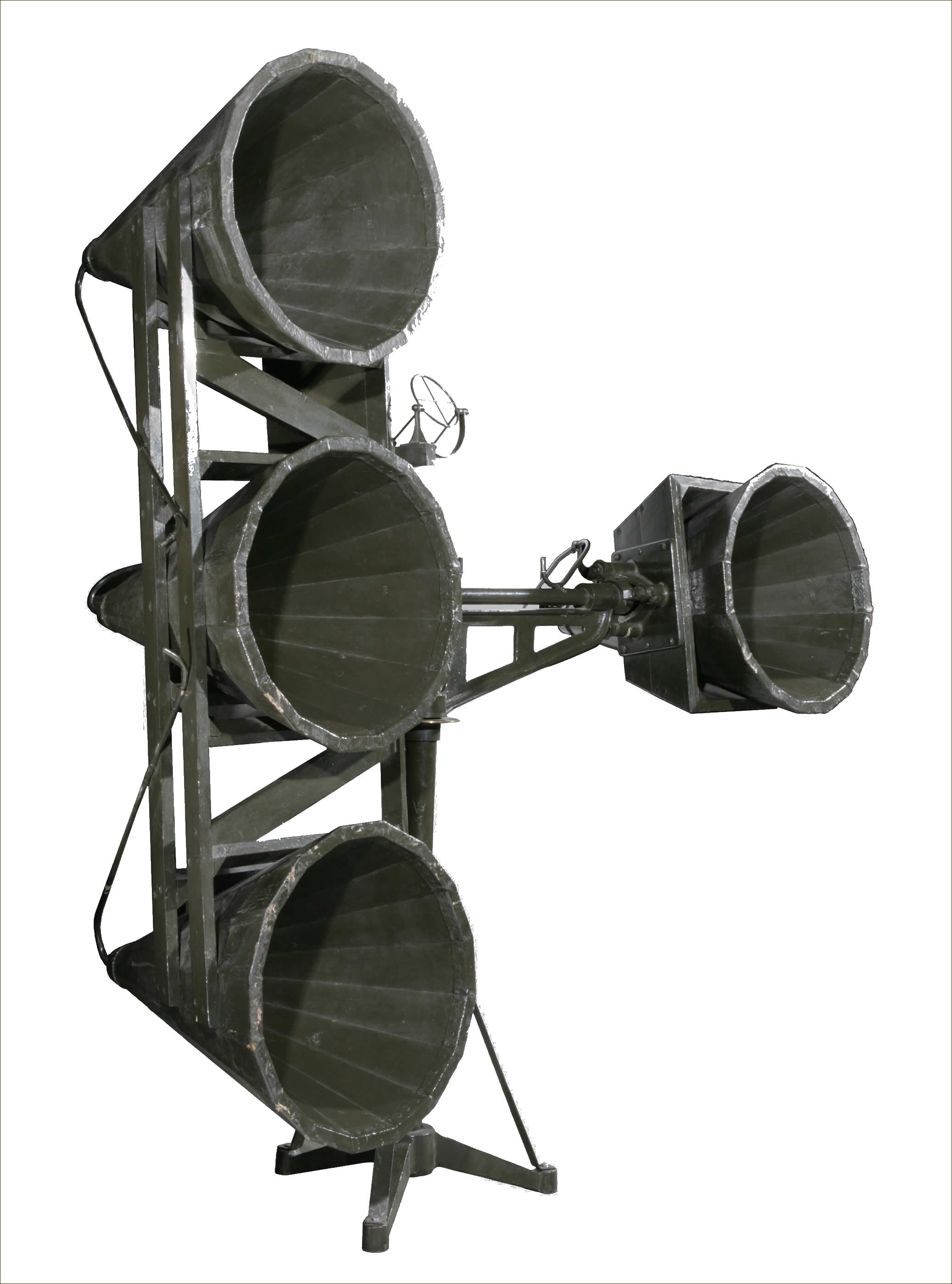 Avec le matériel de détection traditionnel, les Britanniques se dotent au fil du temps de trois types de dispositif acoustique: Le disque, le miroir et le mur. L’un des premiers disques fut taillé dans la craie d’une falaise durant l’été 1915 mais il faut attendre 1917 pour voir paraître le long des côtes une série de miroirs paraboliques en béton de plusieurs mètres de diamètre qui ont été utilisés avec succès jusqu’à la fin du conflit en détectant plusieurs raids ennemis. Conscient du danger grandissant de l’aviation, d’autres miroirs sonores seront construits et la technologie sera développée jusqu’au début des années 30 avec l’apparition de structures aux dimensions impressionnantes telles que des paraboles de plus de 9 mètres de diamètre et mur concave de 60 mètres de long.