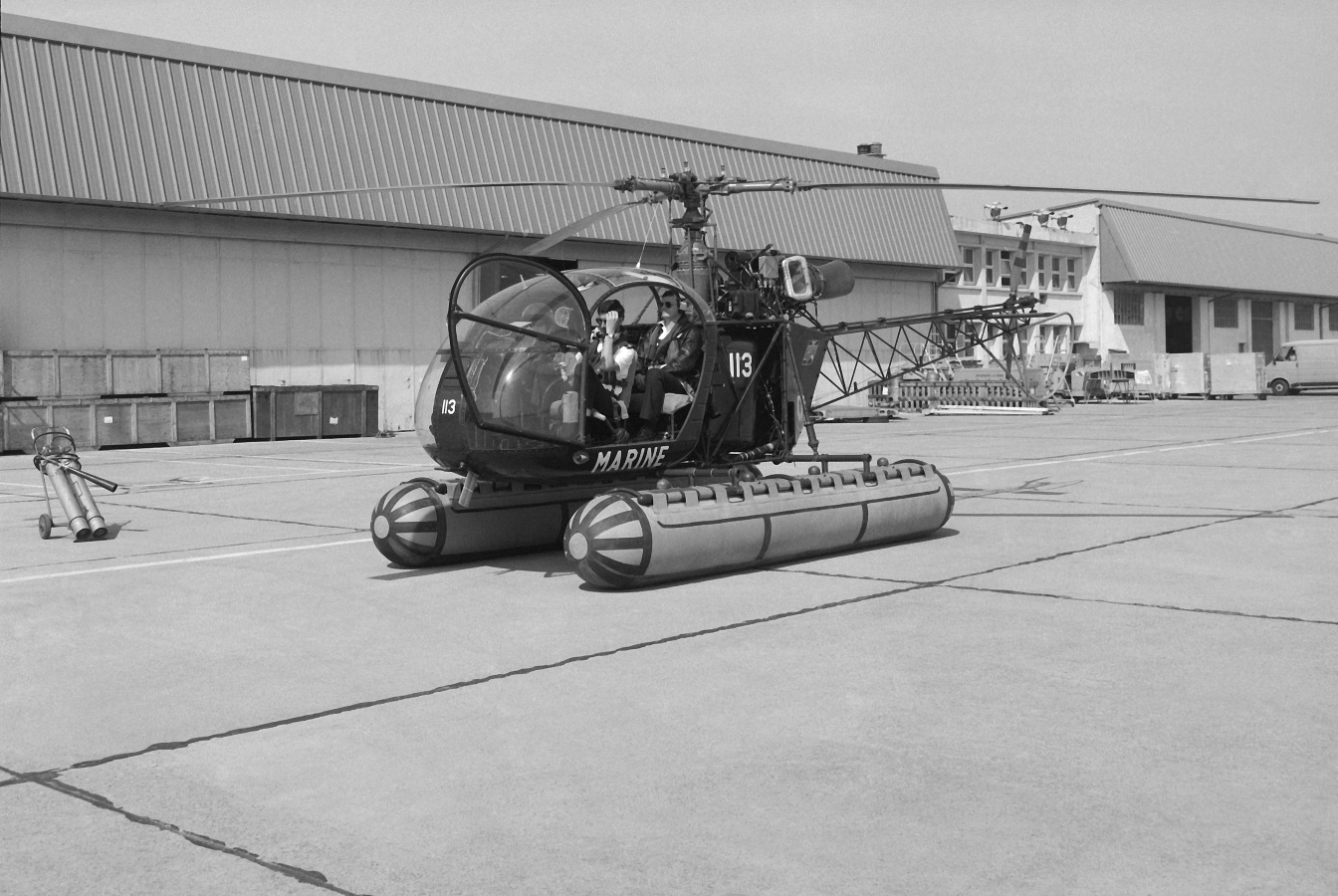 Au début des années 1960 les Alouette II quadricycles de l’aéronavale française surprennent encore quand elles apparaissent sur les ponts des porte-avions français mais aussi à bord de navires de plus petits tonnages. L’année 1960 marque aussi la dissolution de l’Escadrille 58S qui doit alors verser ses Alouette II aux Escadrilles 23S et… 10S. Cette dernière n’étant pas une unité comme les autres puisqu’elle dépend directement du CEPA (le Centre d’Expérimentations Pratiques et de réception de l’Aéronautique navale) sis sur la base aéronavale de Hyères. Ses Alouette II vont donc participer activement aux missions d’essais d’armement et de matériels. Dans le même temps la 10S reçoit une autre version étranger de l’Alouette II, dotée de deux gros boudins gonflables lui permettant d’amerrir et de déjauger comme un hydravion à flotteurs. Ces machines servent notamment en soutien aux tests de torpilles et des futurs missiles anti-navires. L’Escadrille 10S fut la seule unité française à mettre en œuvre à la fois les deux sous-versions de l’Alouette II.