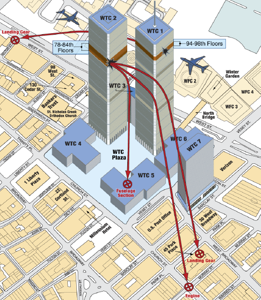 L’espace aérien de New York City est rapidement bouclé. Des chasseurs McDonnell Douglas F-15 Eagle et General Dynamics F-16 Fighting Falcon survolent la ville. Dans le même temps deux panaches de fumée noire s’élève dans son ciel : les tours sont en feu. Les pompiers arrivent de toute la ville, de tout le comté, de tout l’état. Des équipes du New Jersey décident même de venir prêter main-forte à leurs collègues new-yorkais. Ils arriveront trop tard.