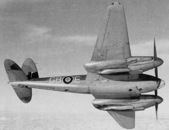 A la fin de la Seconde Guerre mondiale, le Mosquito B Mk XVI volait au sein de onze squadrons du Bomber Command. Cet appareil, qui avait effectué son vol initial en novembre 1943, se caractérisait par deux moteurs Merlin 70, un habitacle pressurisé lui permettant d’évoluer à l’altitude de 12 000 m et une capacité d’emport de charge de 1 810 kg. Au total, 1 200 Mosquito B Mk XVI Furent construits, constituant le fer de lance de l’aviation de bombardement légère britannique de l’après-guerre, et 122 Mosquito B Mk 35 furent fabriqués par Airspeed en vue d’opérer dans les forces d’occupation stationnées en Allemagne fédérale. Extrapolé du Mosquito B Mk Vl, le Mosquito B Mk 35 prit l’air pour la première fois en mars 1945, avec le système Rebecca et un radar Gee H Mk 2.