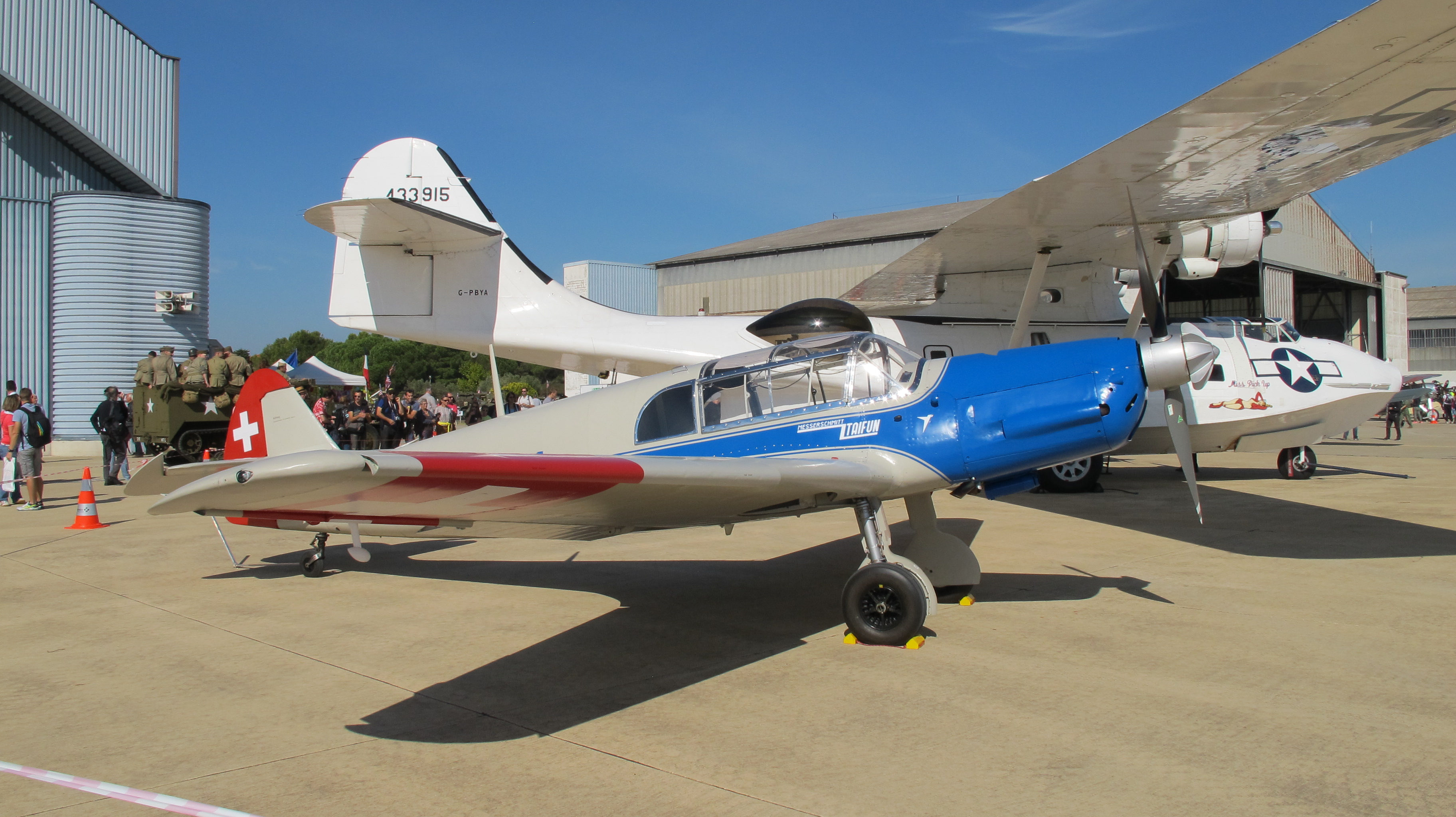 Autour de la période de la guerre, quelques belles machines nous faisaient remonter le temps : le Ryan PT-22, le Stearman PT-18, avions d’entraînement de base américains, plusieurs Piper Cub, véritables warbirds, le Stinson Reliant, qui a aussi porté l’uniforme, et le gros Ryan Navion, en kaki US Army (L-17). Ce dernier est un des rares avions civils étudiés par North American. Il a été construit par Ryan. Il est gros et apparenté au P-51 (étudié par Roy Liming). Il y avait aussi un très beau « Taifun », Messerschmitt Bf-108, qui a très bien volé. Quant au Waco YMF-5, c’est une sorte d’équivalent à l’automobile Morgan : toujours construit mais dans l’esprit des années Trente. Un très bel appareil.