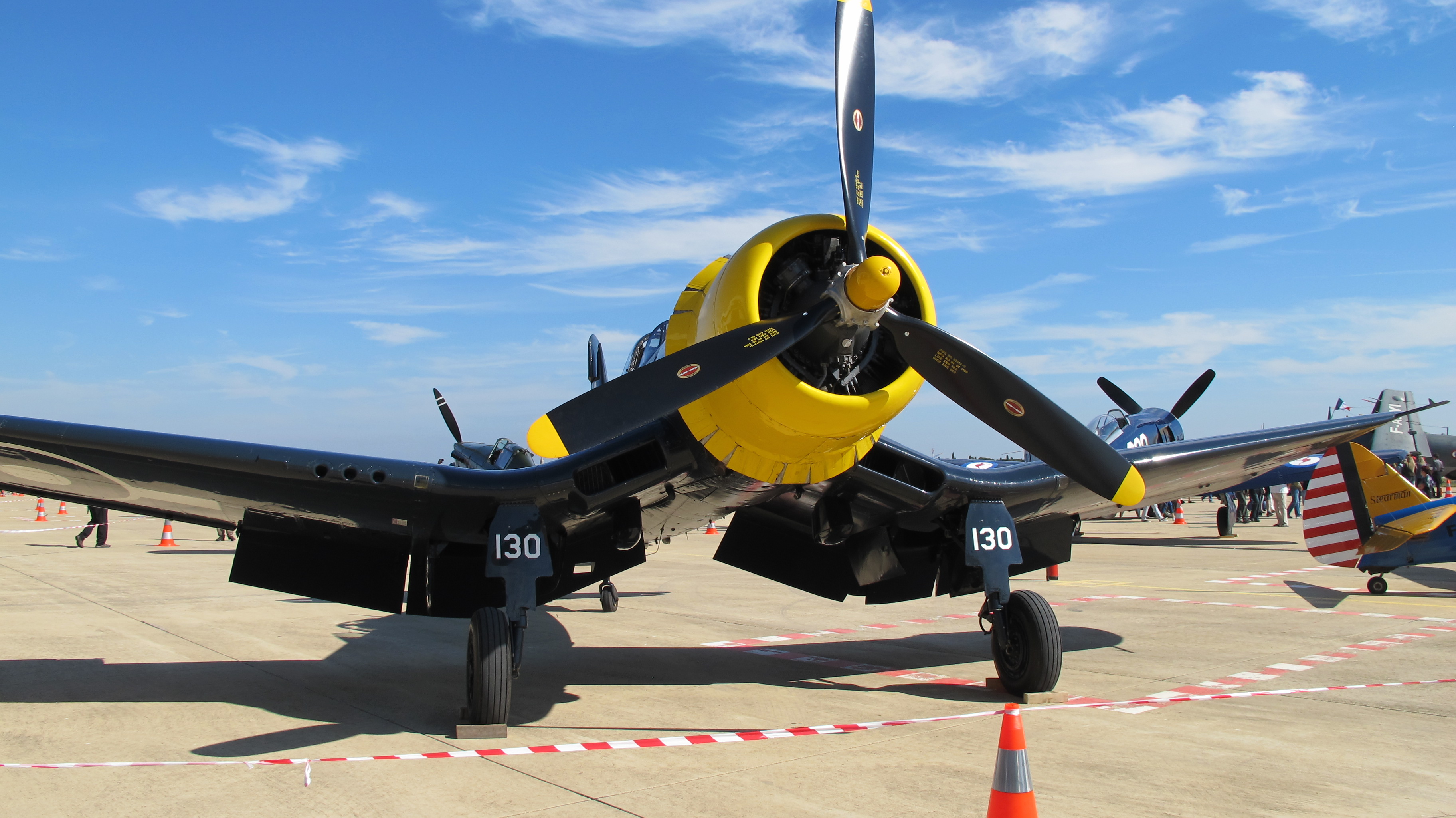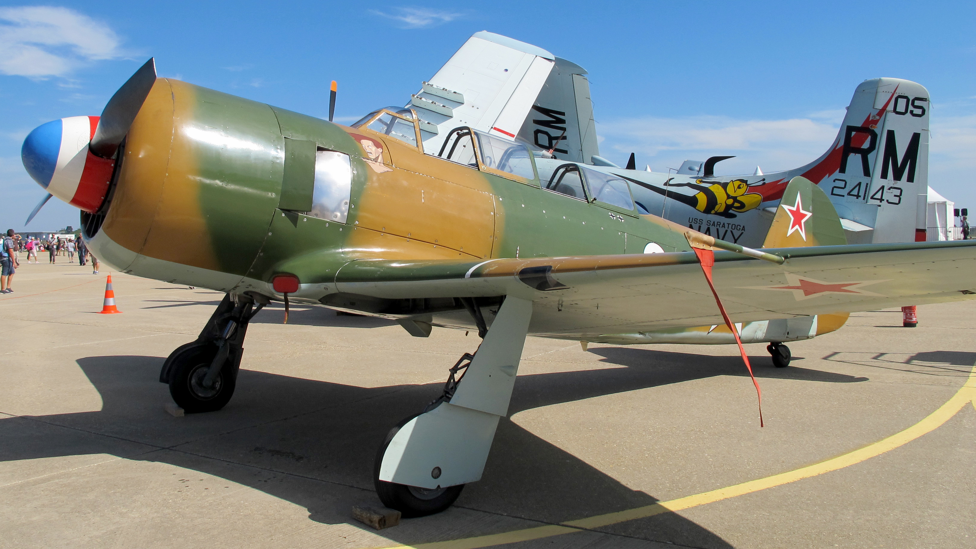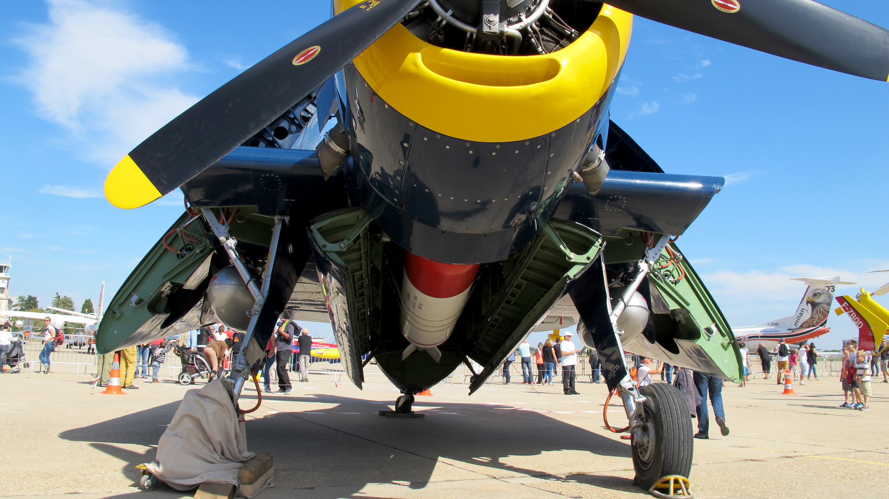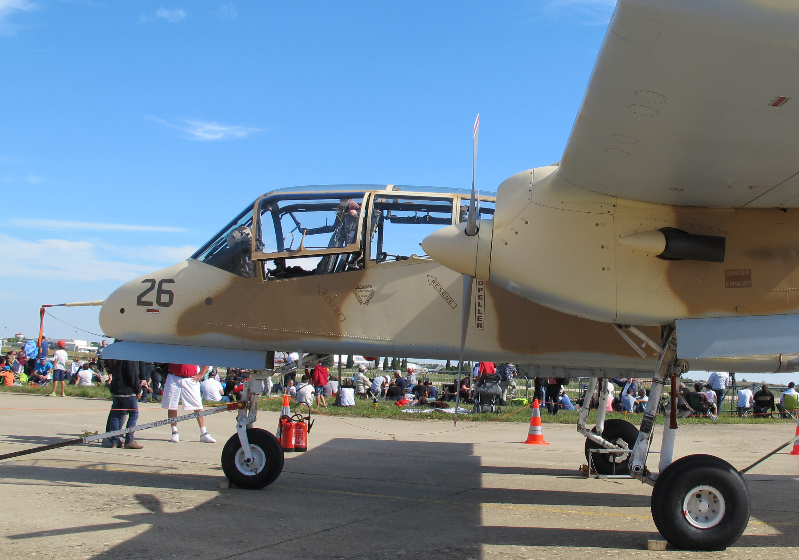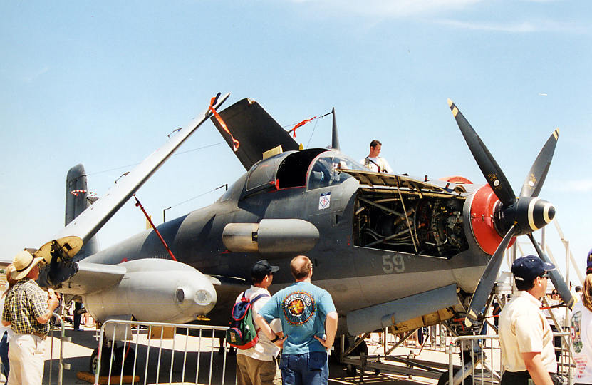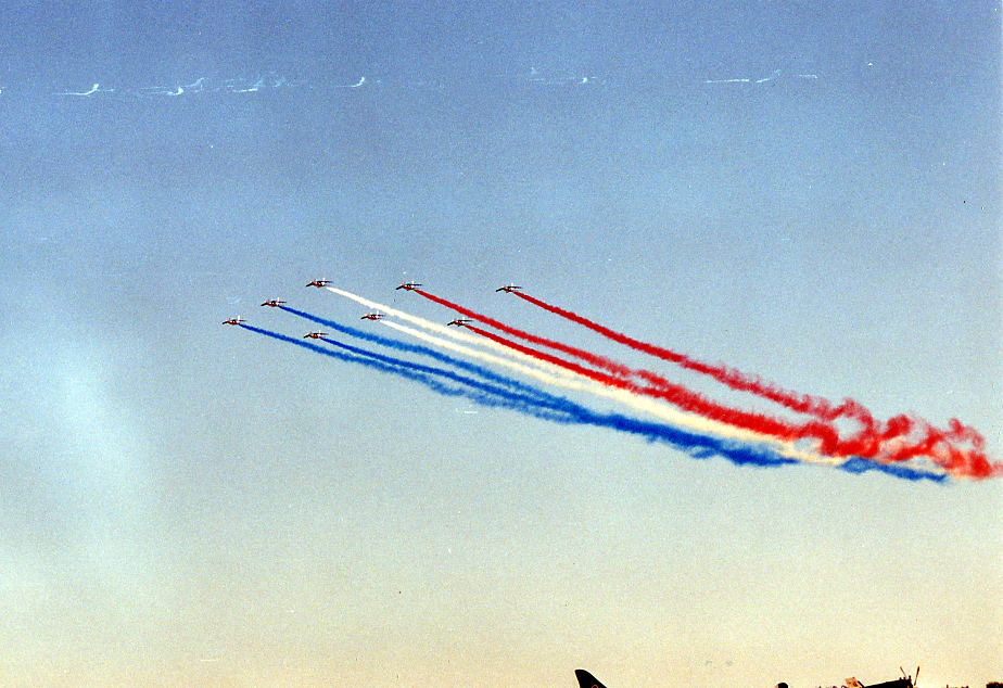 L’après-guerre était très présent avec des T-6 (dont un faux Zéro), le Zlin Trener, le Yak-11 aux accents de Guerre Froide, le très beau Hawker Sea Fury, quintessence de l’hélice, aux couleurs australiennes. Les machines de combat américaines étaient bien représentées avec le Skyraider, puissamment armé et autre représentant de l’aéronavale, Douglas A-4 Skyhawk du (mystérieux ?) groupe Draken et l’OV-10A Bronco. Du côté français, l’émouvant petit bébé Jodel, amorce d’une aviation amateure, et, avec des turbines, un Morane-Saulnier MS.733, deux MD.312 Flamand, deux Fouga Magister (Patrouille Tranchant) à la démonstration pleine d’habileté… et de décibels. Toujours à turbine (RR Dart) l’inévitable Bréguet 1050 Alizé, formidablement à sa place sur cette base.
