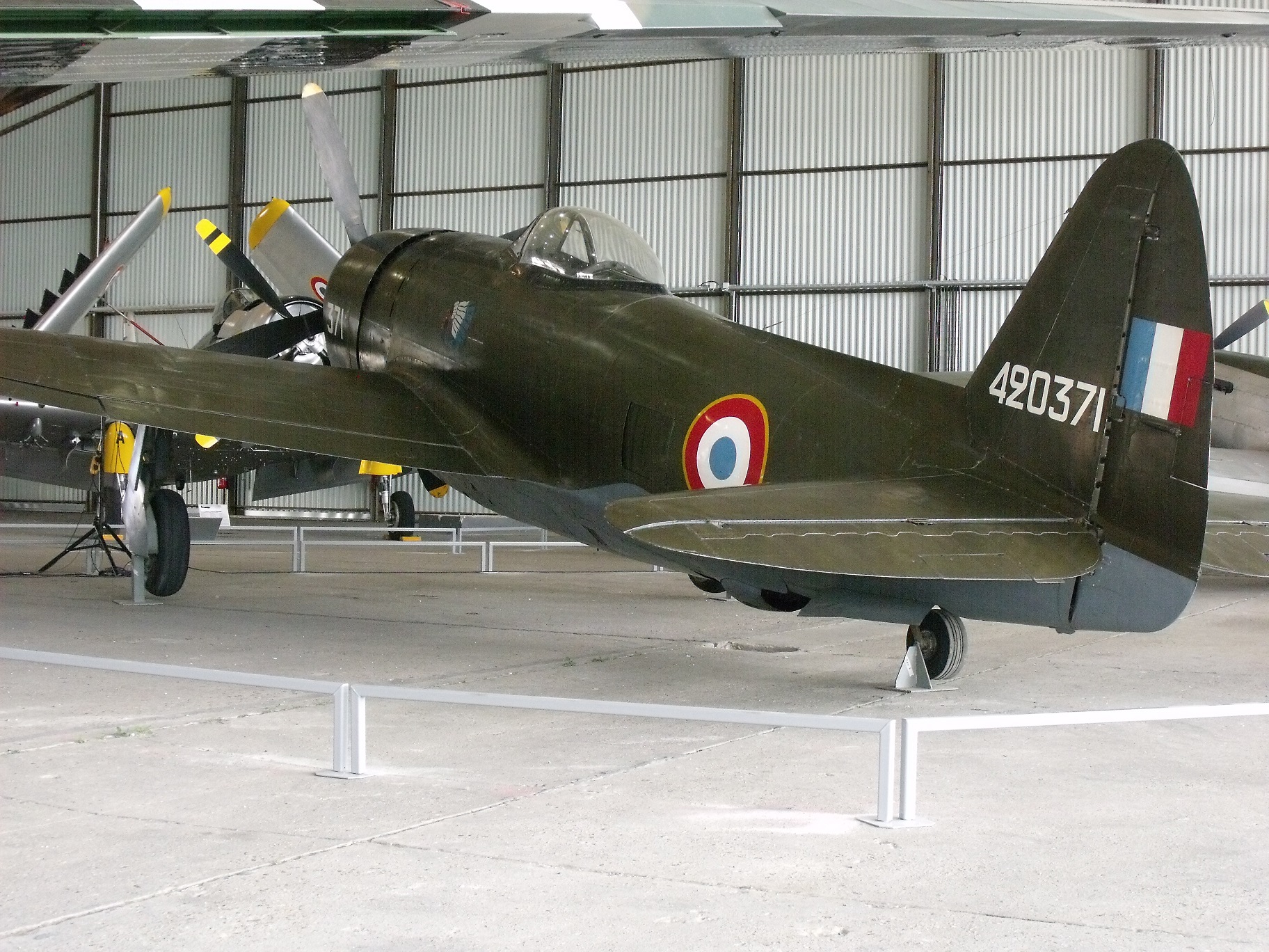 Dans ce hall, il existe un anachronisme, mais quel magnifique anachronisme : le Douglas AD Skyraider. Superbe dans sa livrée française années 1950, les ailes repliées comme l’étaient celles des appareils embarqués sur les porte-avions américains de l’époque. Là encore les gens du musée ont fait un travail remarquable pour restaurer cet avion.