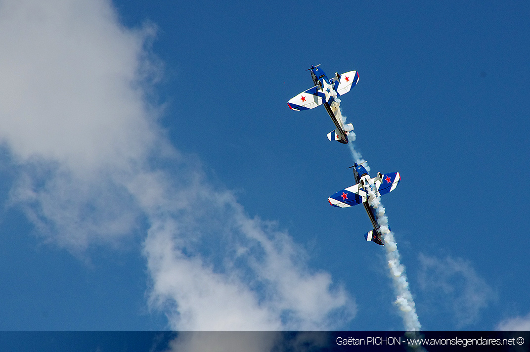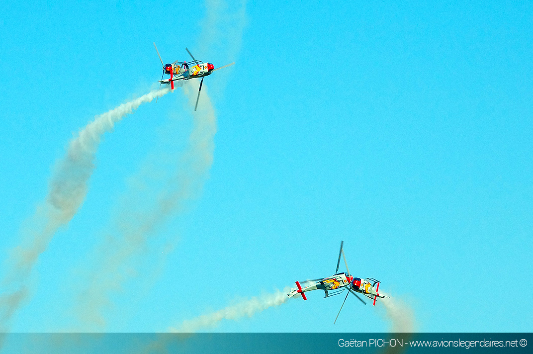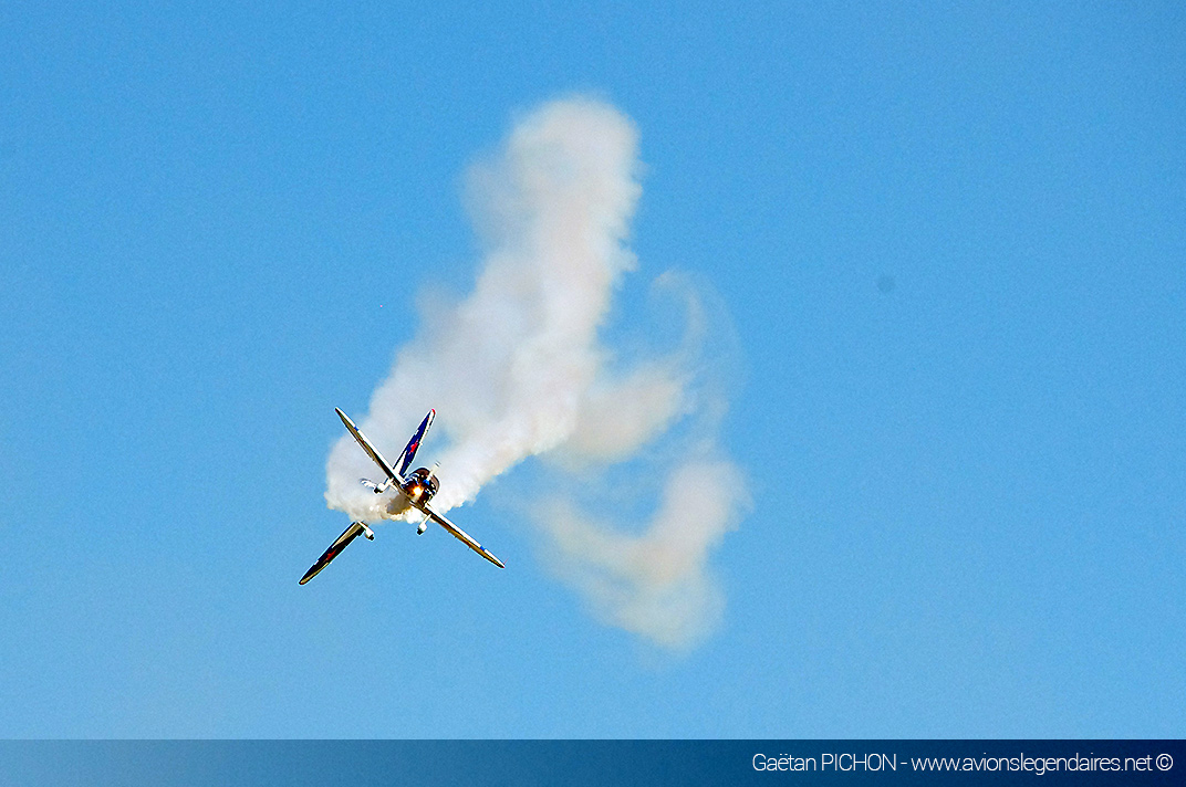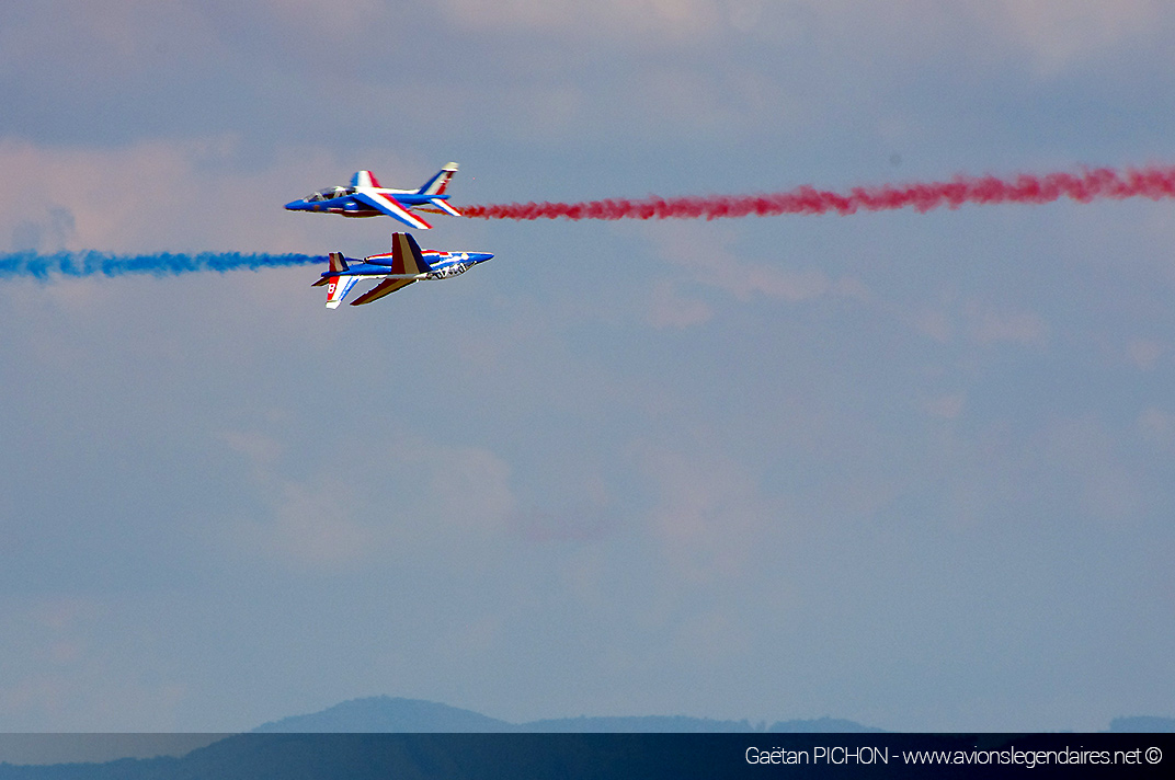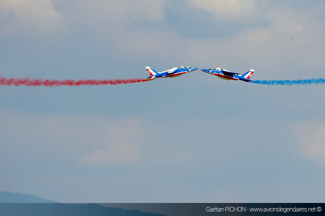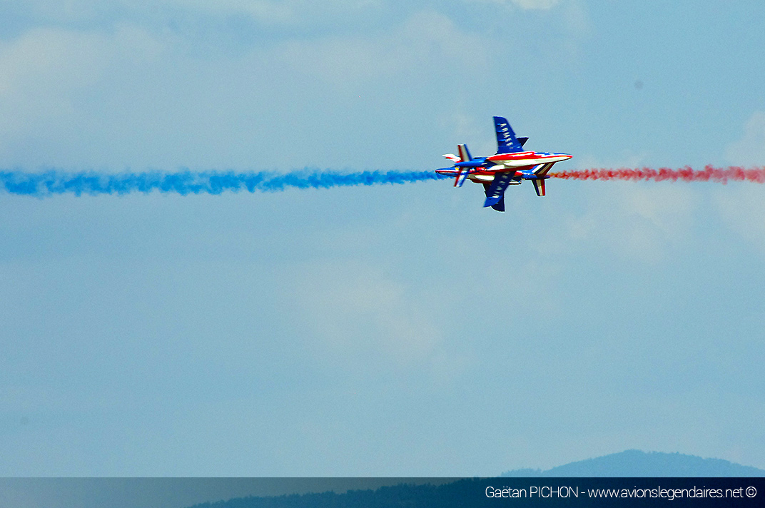 Bien que l’aérodrome soit dans l’axe de l’approche finale de l’Euroairport de Bâle-Mulhouse, le trafic aérien commercial a été bloqué pour laisser de la place à l’acrobatie notamment du Yak-52, mais surtout au show de la Patrouille de France et du Rafale Solo Display. On a eu l’occasion de voir également la démonstration toujours élégante et précise du duo de Cap-10 de la patrouille CapTens, ainsi que les évolutions chorégraphiées des EC-120 Colibri de la patrouille ASPA venue d’Espagne.