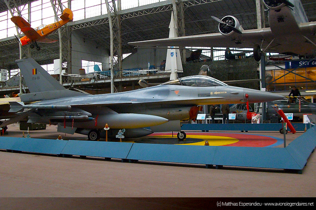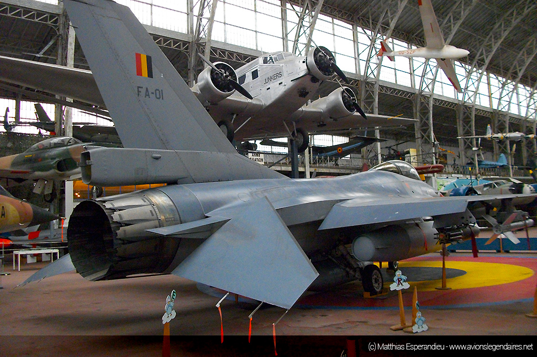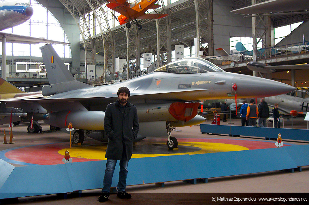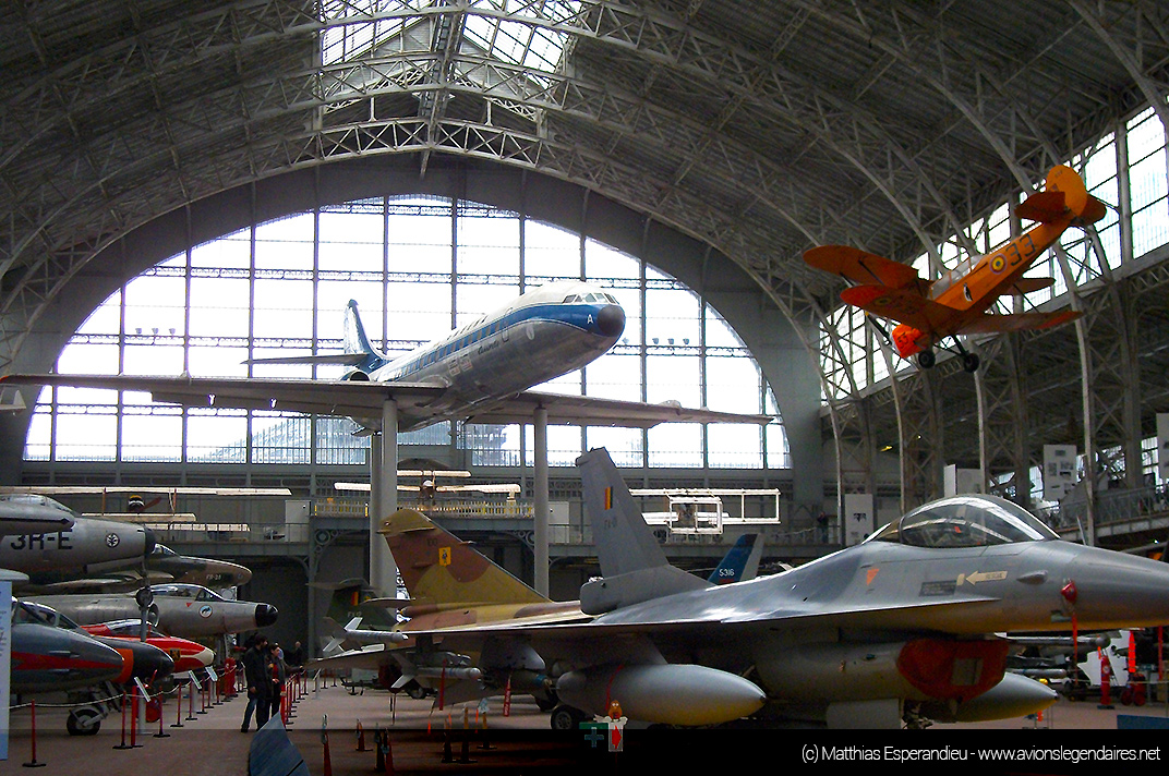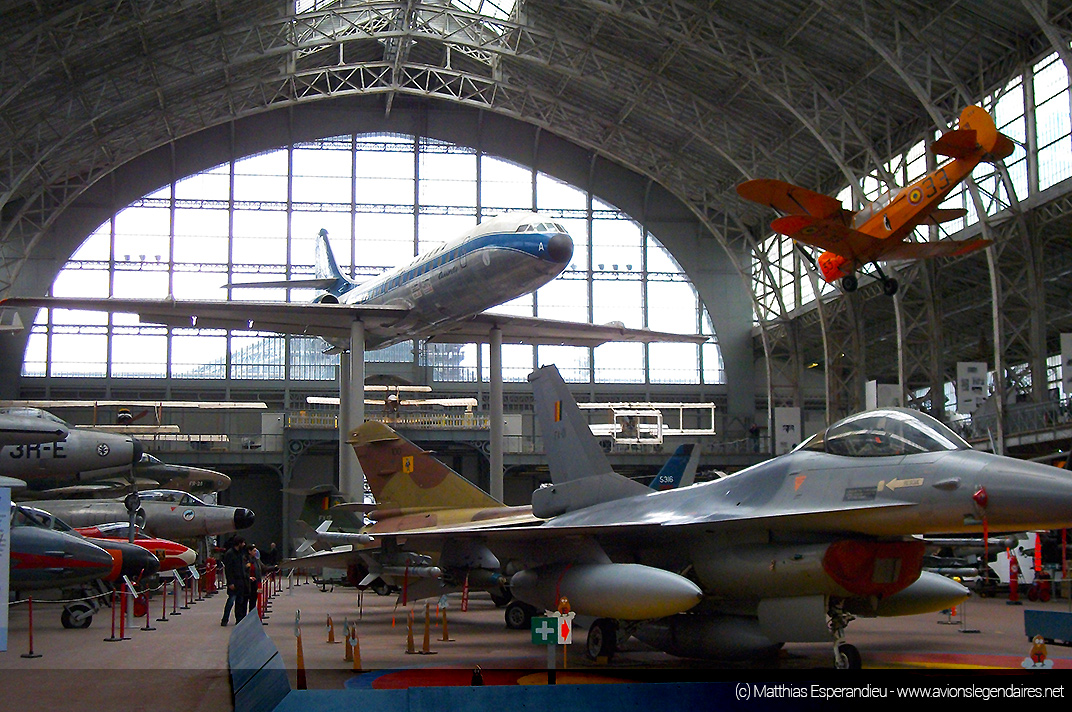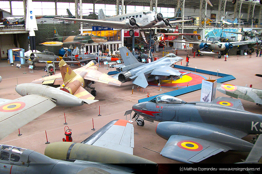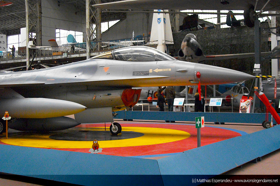Nous vous proposons quelques belles images de ce musée, qui ne cesse d’être amélioré au fil des années. Ainsi, il accueille depuis peu un avion de combat moderne F-16 Fighting Falcon, retiré du service de la Composante Air. C’est la figure de proue de la collection. Le chasseur est positionné au centre de tous les engins exposés. Sur le sol, à l’emplacement du chasseur d’origine américaine, une grande cocarde de l’armée de l’air belge est peinte sur le sol.