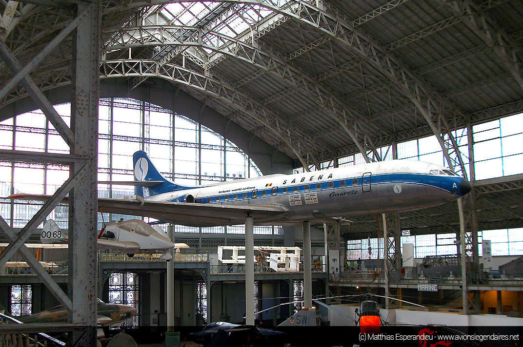 Il nous faut terminer sur le clou du spectacle. La Caravelle qui surplombe la nef ! Positionné à une dizaine de mètres de hauteur, l’avion de ligne emblématique de l’aviation européenne des années 60 est majestueusement mis en valeur. Aux couleurs de la Belgian World Airlines, l’avion porte le nom de l’entreprise aéronautique belge Sabena. La Caravelle fait face à un C-119 Boxcar situé à l’autre extrémité de la nef.