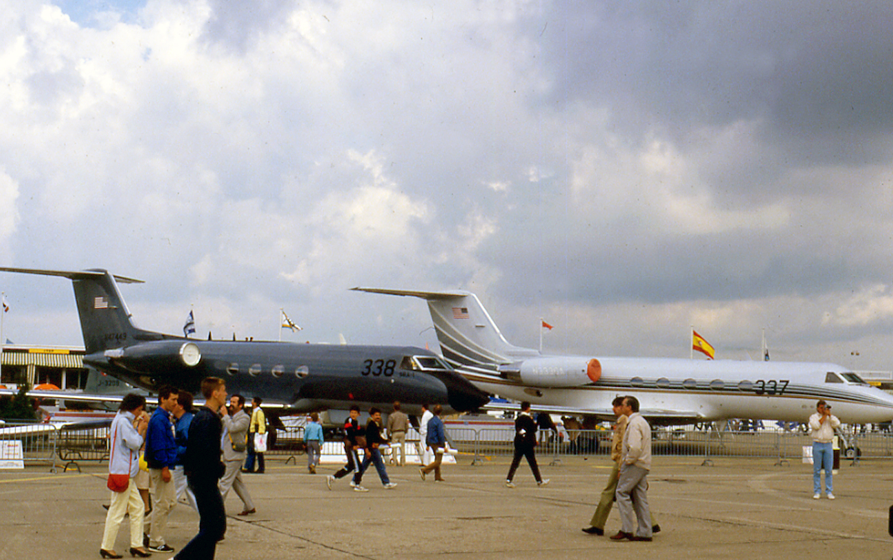 L’ATR 42 et son successeur annoncé le 72 n’ont enregistré que 51 commandes mais les fluctuations des prix du pétrole finiront par faire de la gamme franco-italienne un succès mondial dans le domaine de ce qu’on appelait pompeusement les « commuters ». On trouve aussi le Jetstream 31 de British Aerospace à la limite des avions d’affaires au sein desquels les Dassault se taillent un beau succès, qui est tout sauf passager. Ils cessent de s’appeler Mystère pour séduire le marché américain. Le Falcon 50 montre ses trois réacteurs dans une belle livrée bleue.