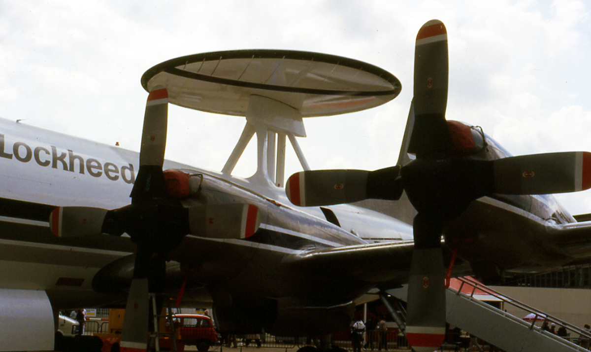 Nouvelle race d’avions, les porteurs de radar. On connaissait l’EC-121 dérivé du Constellation, le E-3 Sentry (dit Awacs) de Boeing. Lockheed vient au Bourget avec le P-3 Orion AEWC (Airborne Early Warning and Control)