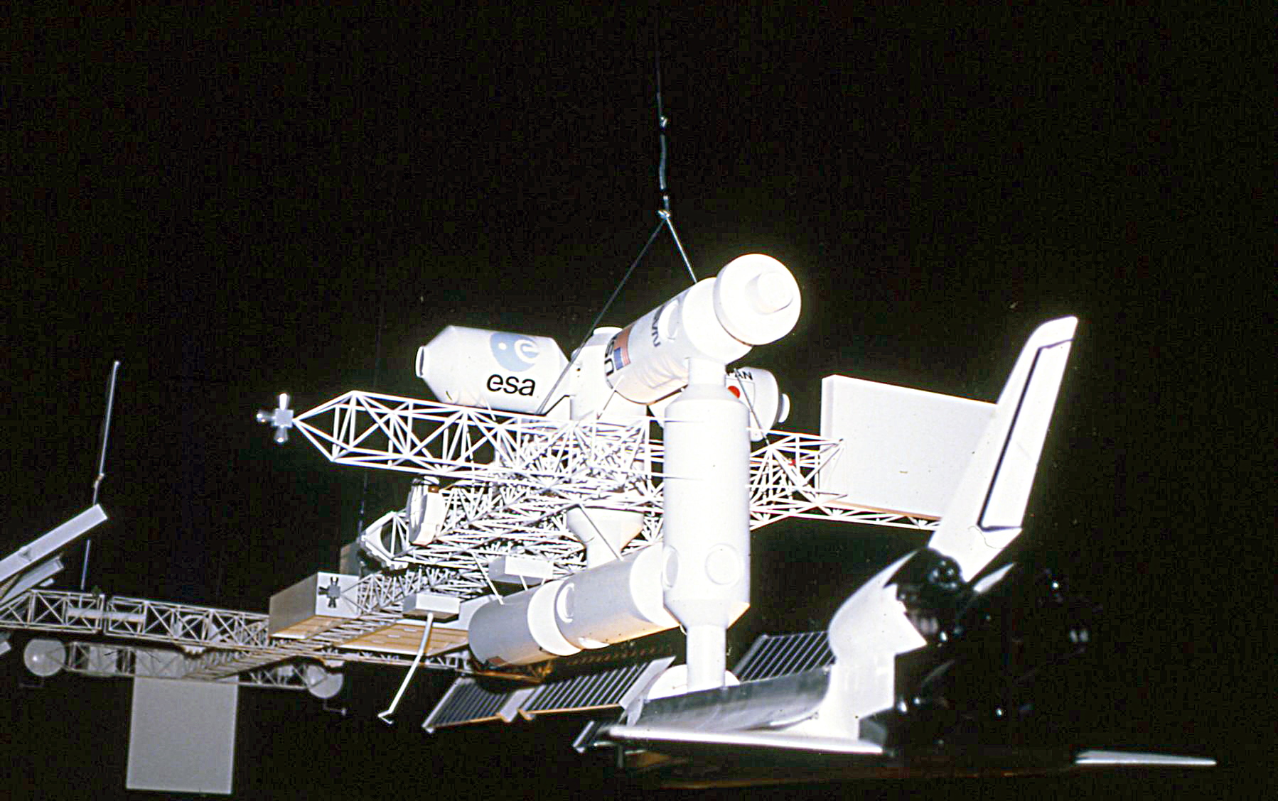 Le salon est dominé par la haute silhouette de la fusée Ariane, orgueil de l’Europe. Sur les stands américain, soviétique et européen on prévoit surtout l’exploitation de l’orbite terrestre : maquette de la future station permanente, qui sera finalement internationale (ISS), du MMU, le scooter de l’espace, maquettes grandeur de stations spatiales comme le Skylab américain, le Saliout Russe, maquette d’un Airbus qui transporte la future navette européenne Hermès. Dassault et Aérospatiale se disputent la maîtrise d’œuvre de la future navette mais celle-ci n’obtiendra pas les crédits.