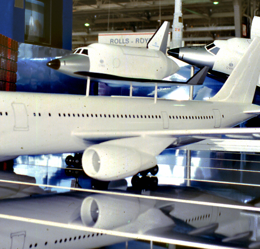 On évoque des matériaux nouveaux, mais encore beaucoup à base d’aluminium, des aérodynamiques nouvelles comme les ailes supercritiques, de nouvelles voilures symbolisées par l’exposition du X-29 dans un très beau stand, et l’explosion de l’informatique à bord : le Gifas expose un Mirage 2000 transparent permettant de mettre en valeur tous ses équipements. On peut admirer les écrans cathodiques des nouveaux tableaux de bord comme celui de l’A320.