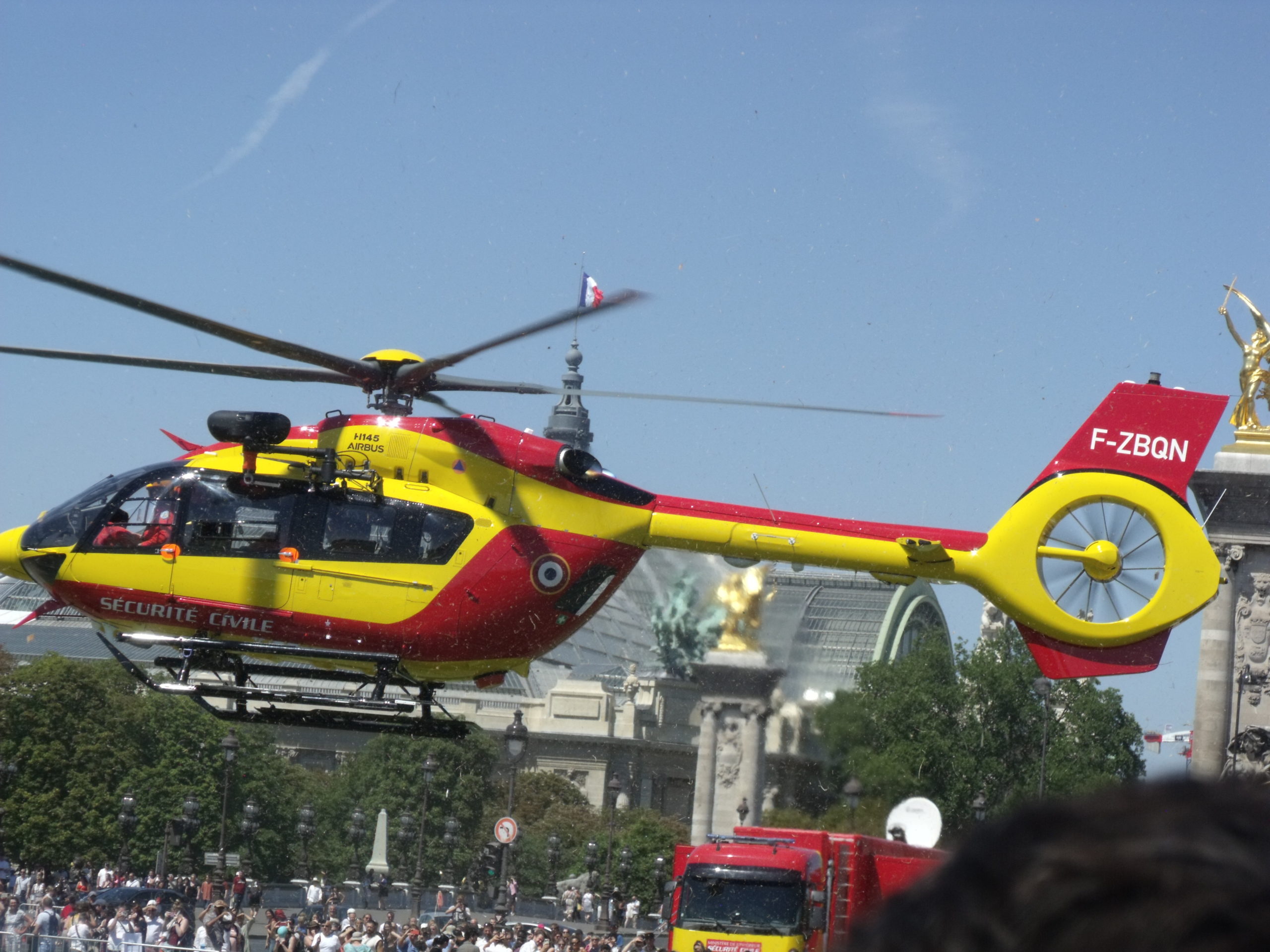 32°C à l’ombre, voilà la température qui régnait ce 14 juillet 2022 sur l’esplanade parisienne des Invalides. C’est là que les hélicoptères des forces armées et des services de l’État sont venus se poser, non sans un certain retard, mais sous des applaudissements nourris. Il faut dire qu’en cette année 2022 le public français et international avait répondu présent, il n’avait pas boudé l’évènement. C’est ce qu’on appelle un très bel évènement de cohésion nationale, ce qu’on attend d’un 14 juillet.