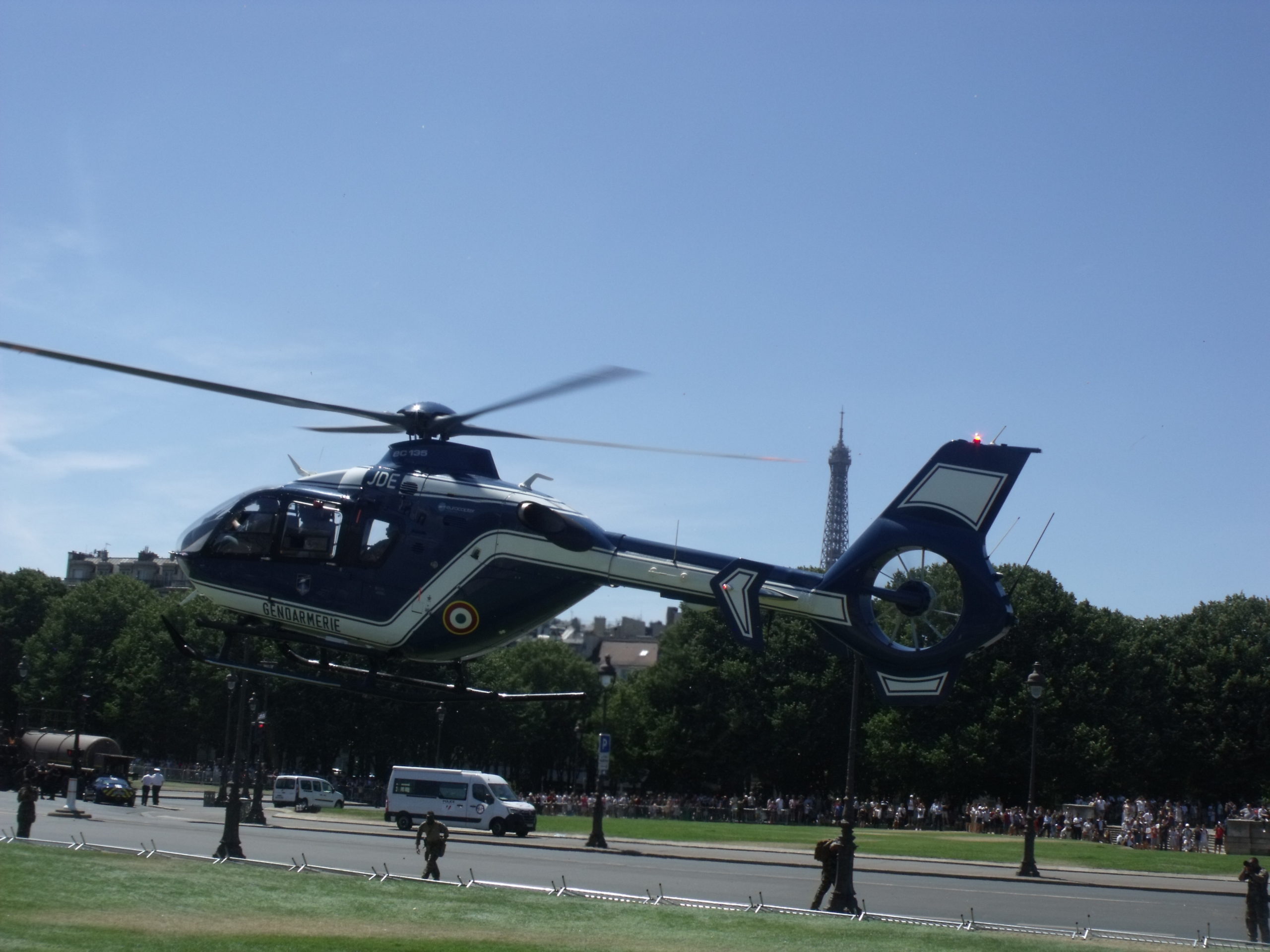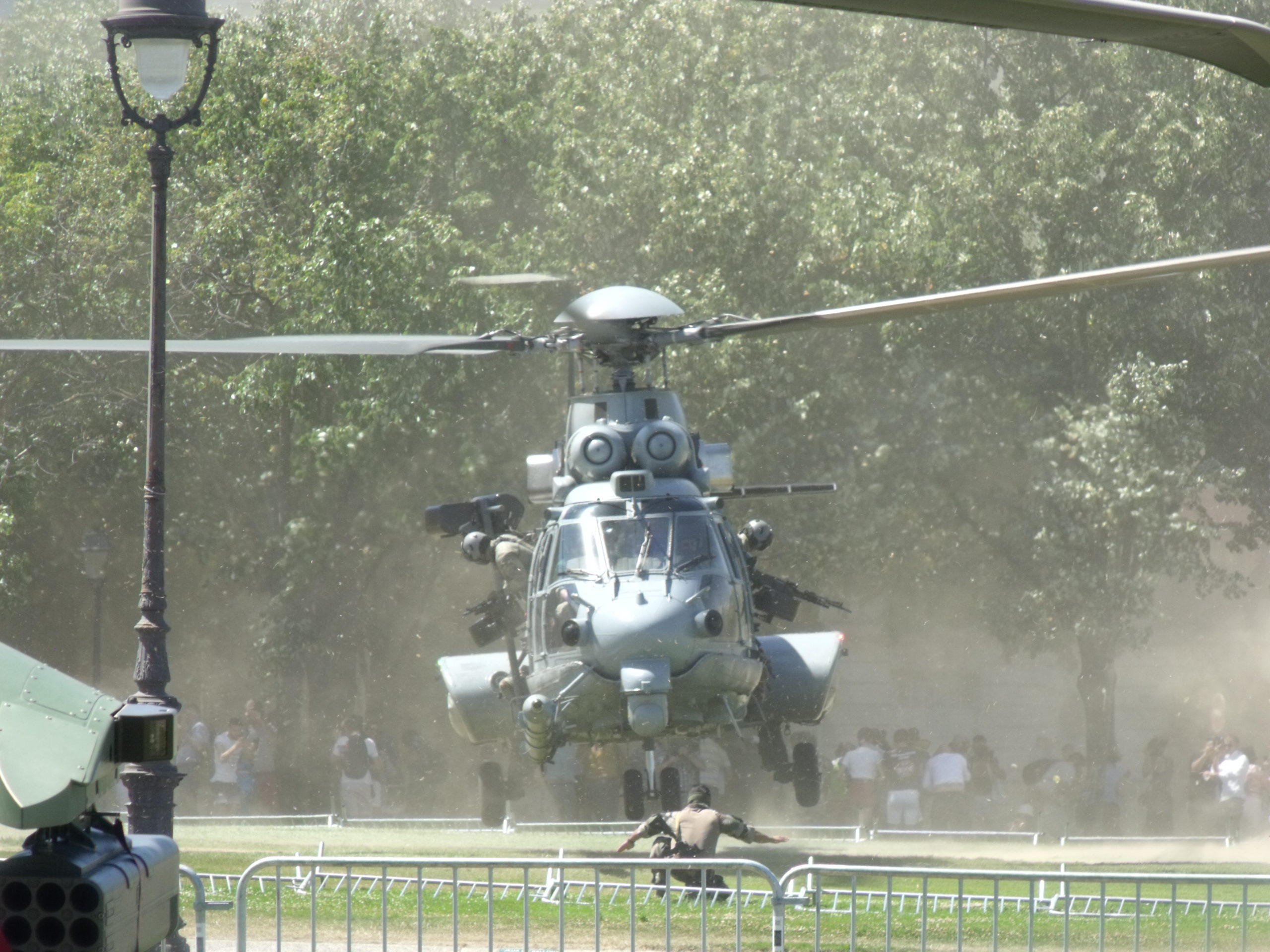 Ah oui dernier point particulier concernant les 32°C à l’ombre de l’esplanade des Invalides : il n’y en pas… d’ombre hormis sous les arbres loin des hélicoptères et matériels présentés.
