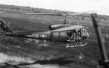 Dès 1960 les premiers Iroquois font leur apparition au Vietnam, en soutien des Sikorsky HUS-1 de l’US Marines Corps.