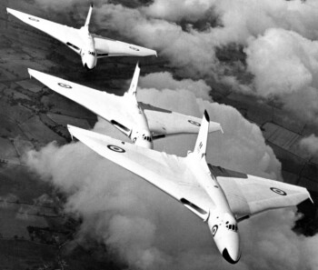 Une analyse d’après-guerre montra l’importance du bombardement stratégique allié. L’importance grandissante des armes nucléaires a rendu plus impératif la construction de bombardier moderne. La RAF a demandé la conception d’un avion qui pourrait être basé n’importe où dans le monde, pouvoir frapper des cibles jusqu’à 1.700 milles de distance, et transporter une charge offensive importante (5.000 kg) à une altitude élevée (50.000 pieds) et à grande vitesse (500 nœuds). Les trois constructeurs Vickers, Avro et Handley Page proposèrent les bombardiers qui formeront la famille des 3 « V Bombers« , respectivement : le Valiant, le Vulcan et le Victor.